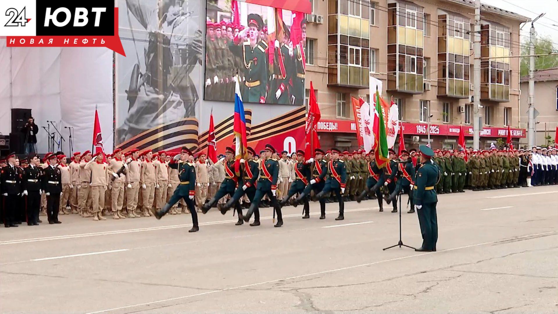 Праздничный парад открыла рота почетного караула, затем на площадь внесли штандарты десяти фронтов Вооруженных Сил Советского Союза. Следом марширующими «коробками» прошли студенты ссузов и вузов, школьники, юнармейцы, участники боевых действий. На площади Ленина собрались сотни альметьевцев. Зрителями были заняты не только трибуны, но и каждый пятачок земли вокруг них. Многие пришли поделиться историей воевавших предков.