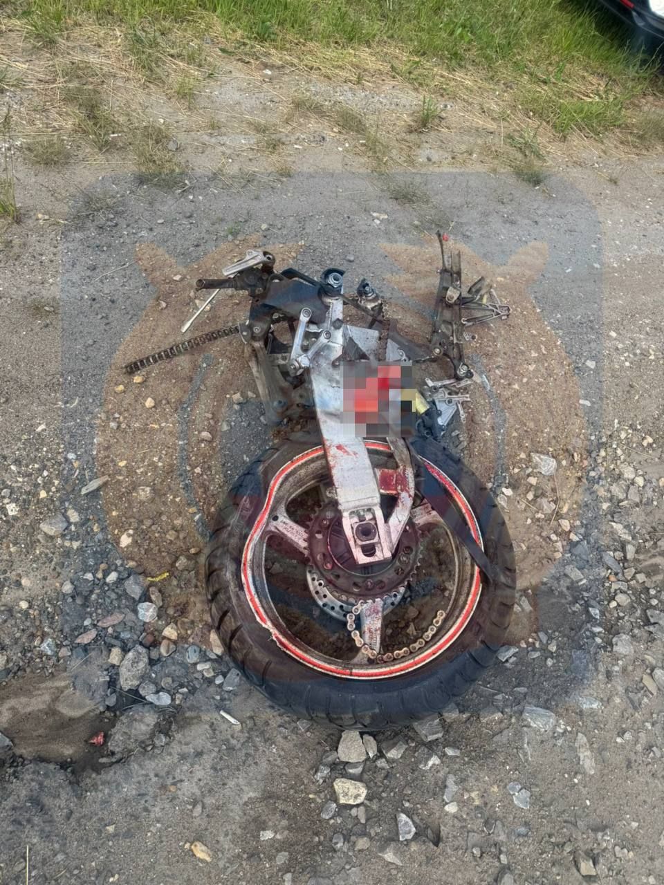 Столкнулись Лада и мотоцикл.