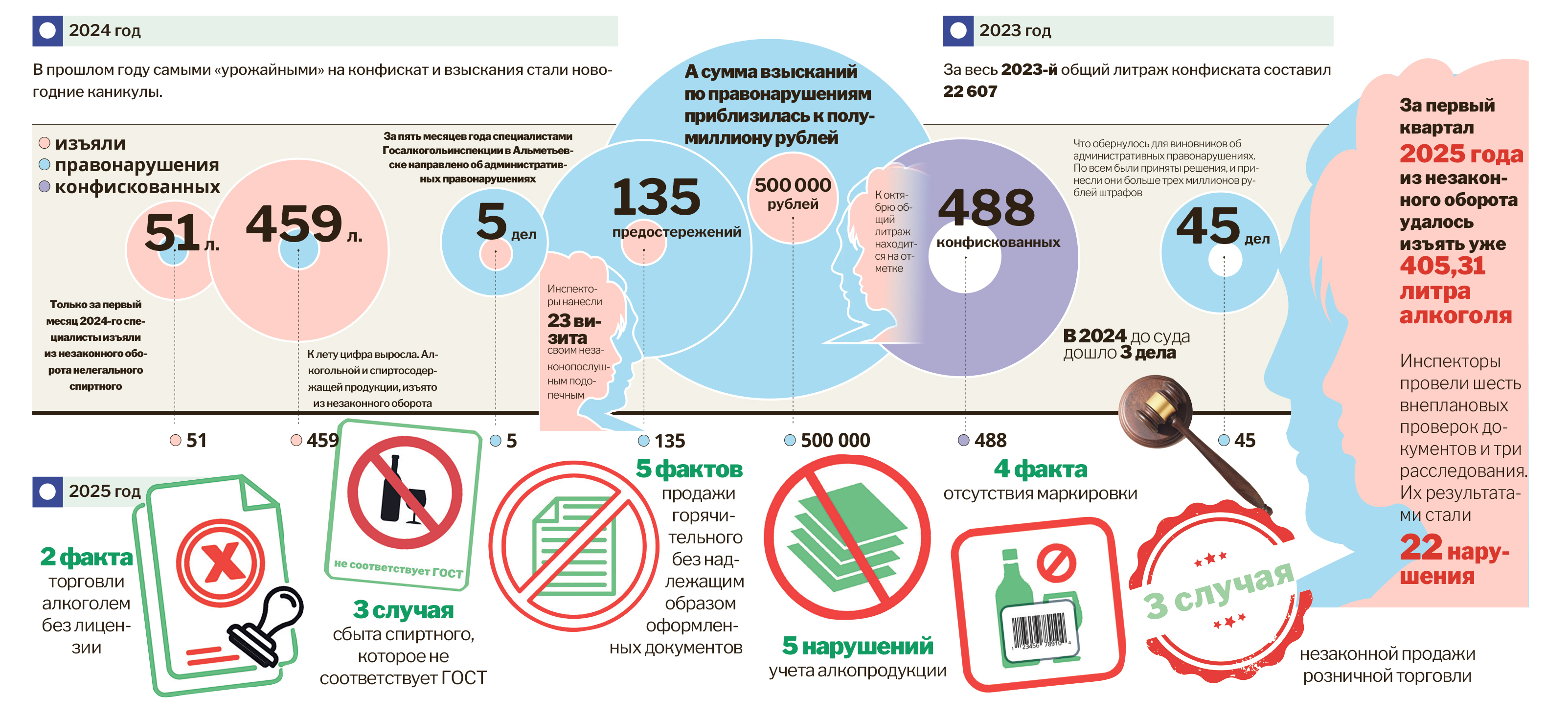 Первая четверть 2025 года принесла незаконопослушным гражданам 360 тысяч рублей штрафов. Из года в год самое распространенное нарушение – торговля без лицензии. На документарные нарушения пришлось 22 случая.