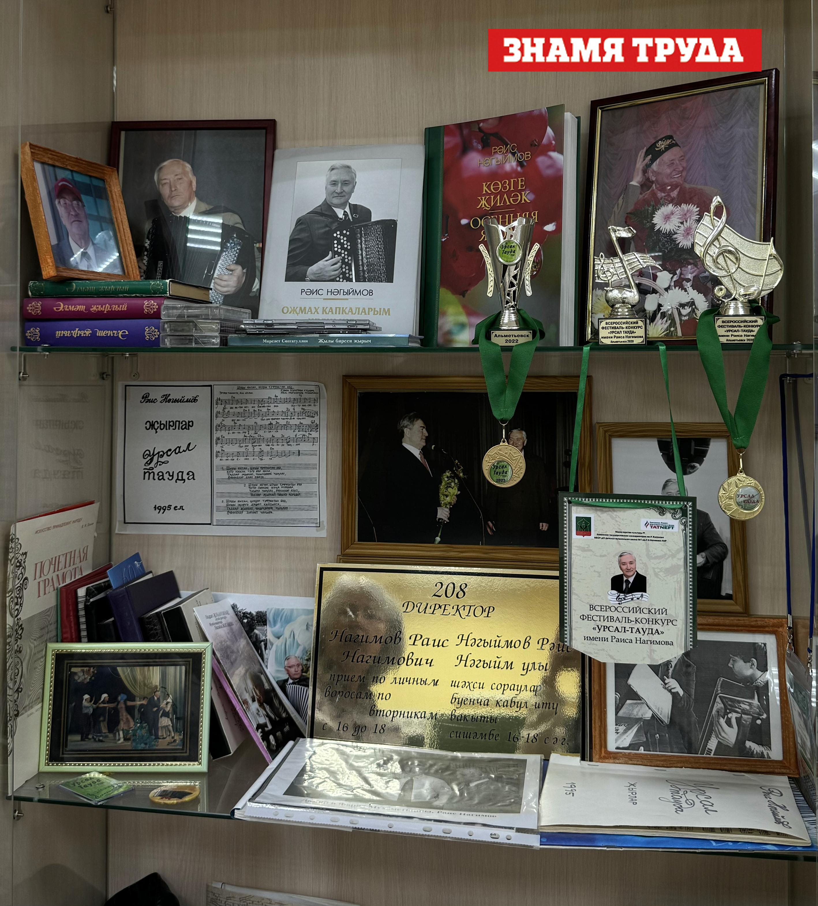 Важное место в экспозиции музея занимают два шкафа, посвящённые Раису Нагимову – человеку, который на протяжении 33 лет возглавлял первую музыкальную школу Альметьевска. Его называют татарским классиком, он был не только талантливым композитором, но и педагогом, наставником. Раис Нагимов ушёл из жизни в 2012 году, а уже в 2013 году школа получила его имя.