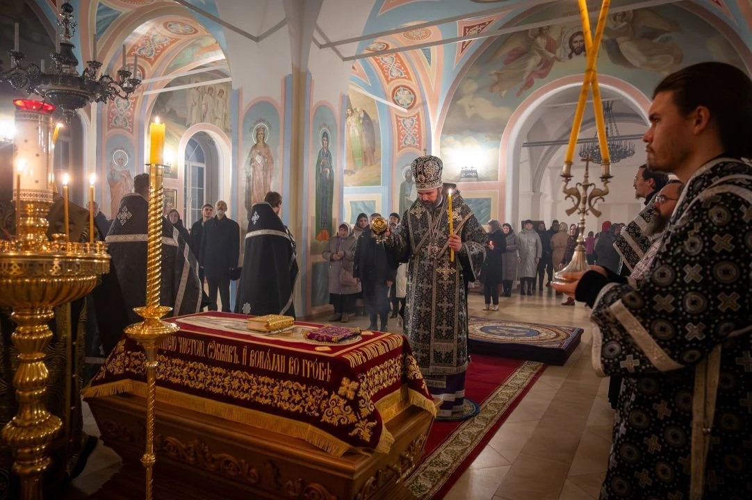 10 апреля, в Великую Пятницу — день воспоминания спасительных Страстей и крестной смерти Господа нашего Иисуса Христа, епископ Альметьевский и Бугульминский Мефодий совершил вечерню с выносом Плащаницы Спасителя и малое повечерие в Соборном храме Казанско-Богородицкого монастыря города Бугульмы. Вынос Плащаницы совершается в час, когда на Кресте совершилась смерть Спасителя. Под пение тропаря «Благообразный Иосиф» святыня была изнесена из алтаря и положена в середине храма. Перед Плащаницей, как перед Самим Христом, было совершено малое повечерие с каноном, именуемым в народе «Плач Богородицы», передававшим скорбь Пречистой Девы у Креста Ее Сына. Вечером того же дня, накануне Великой Субботы, владыка Мефодий совершил утреню с чином погребения Господа нашего Иисуса Христа. Церковь в этот день молитвенно воспоминает погребение Спасителя, пребывание Его во гробе, сошествие душой во ад и победу над смертью, предвосхищая славное Воскресение. После Великого славословия был совершен крестный ход с Плащаницей под погребальный мотив молитвы «Святый Боже». Затем перед святыней были прочитаны пророчество о Воскресении из книги пророка Иезекииля, послание апостола Павла об искупительной жертве Христовой и Евангелие о запечатании гроба. По завершении богослужения духовенство и молящиеся совершили молитвенное поклонение перед Плащаницей.
