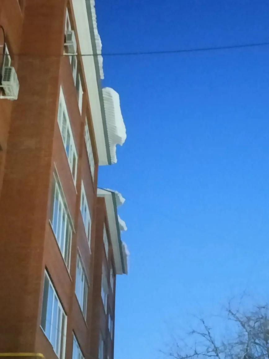 – Заявка к нам поступила в районе 11:00. Сейчас бригада выехала и устраняет последствия. Крышу чистили полторы недели назад. Но, к сожалению, очень много снега в этом году. Постоянно выпадает, плюс подтаивает. Последние дни была очень тёплая погода, и снежные массы скопились, стали тяжелыми и упали. Уже снегозадержатель не выдерживает, – пояснил мастер УК «Альянс».