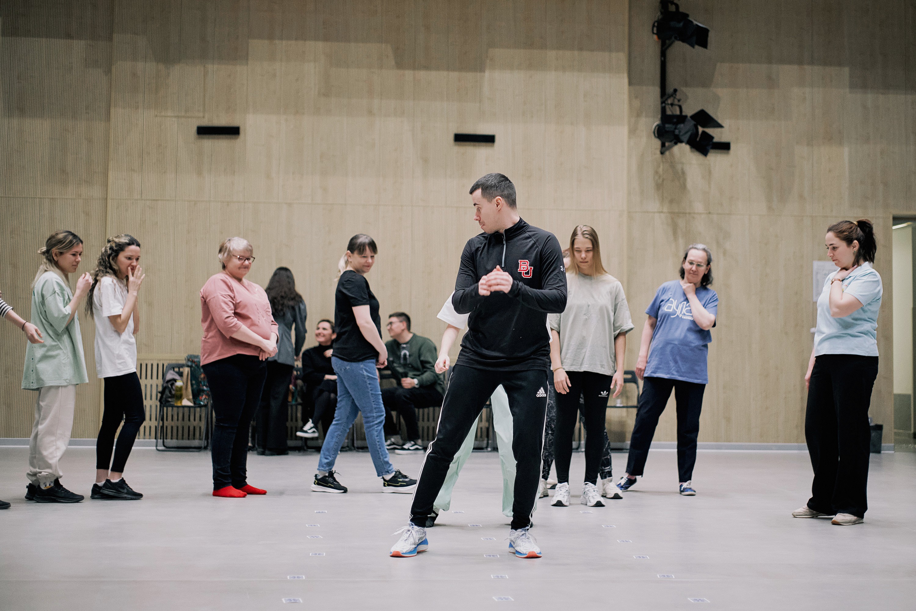 В начале зимы 2023-го творческий коллектив театральной студии «Аулак» приступил к созданию будущей постановки. Первым в Альметьевск приехал основатель казанской школы «Нетанцы», танцор, педагог по сценическому движению и пластике Ильдар Алекбаев. Лаборатория «Как звучит жест?» охватила 14 слышащих и шесть глухих и слабослышащих людей. Участники разделились на пары: один человек с нарушением слуха, другой – без.
