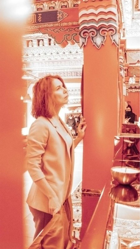 Сильнее всего вдохновил меня зал, посвященный буддизму. Первые секунды от восторга у меня даже перехватило дыхание. Сочетание ярко-красного и золотого ослепляют, музыка добавляет атмосферы. Сначала ты не веришь, что за окнами снег и ты находишься в Казани. Мозг спрашивает тебя: «Хозяйка, а что телепортацию уже придумали, и мы перенеслись в буддийский храм?» Хочется просто остаться в моменте, замереть, исследовать каждую деталь. Хотя за этим желанием я ловила себя в каждом зале. Настолько пространства заполнены творениями мастера. В голове не укладывалось: придумать и воплотить в жизнь воедино настолько разные направления.